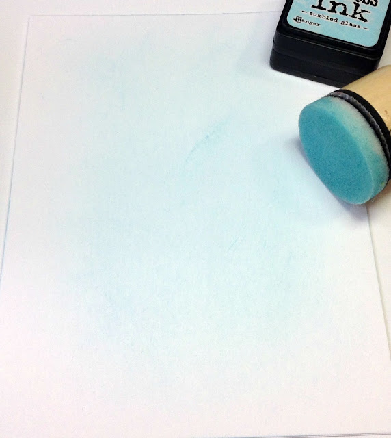 I inked the center of a piece of A2 sized white Soft Finish Cardstock with a bit of Tumbled Glass Distress Ink.