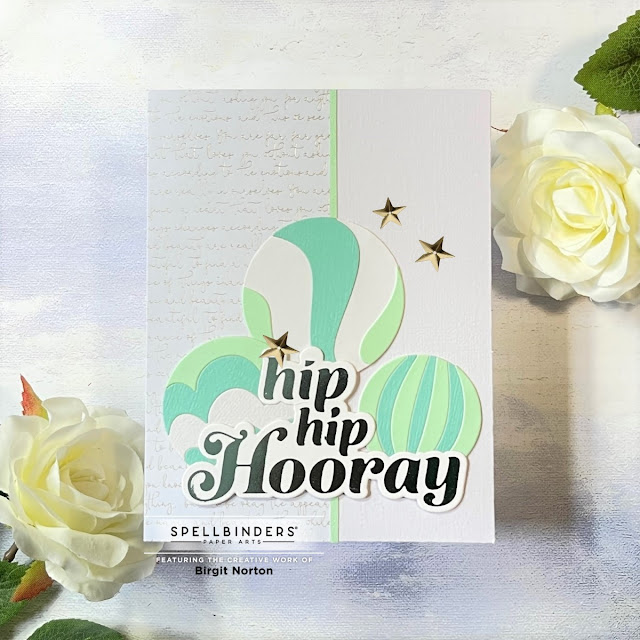 I had the opportunity to work with Glimmering Hooray Hot Foil Plate and Tiny Dots Embossing Folder, which I paired with Color Block Balloons Etched Dies.